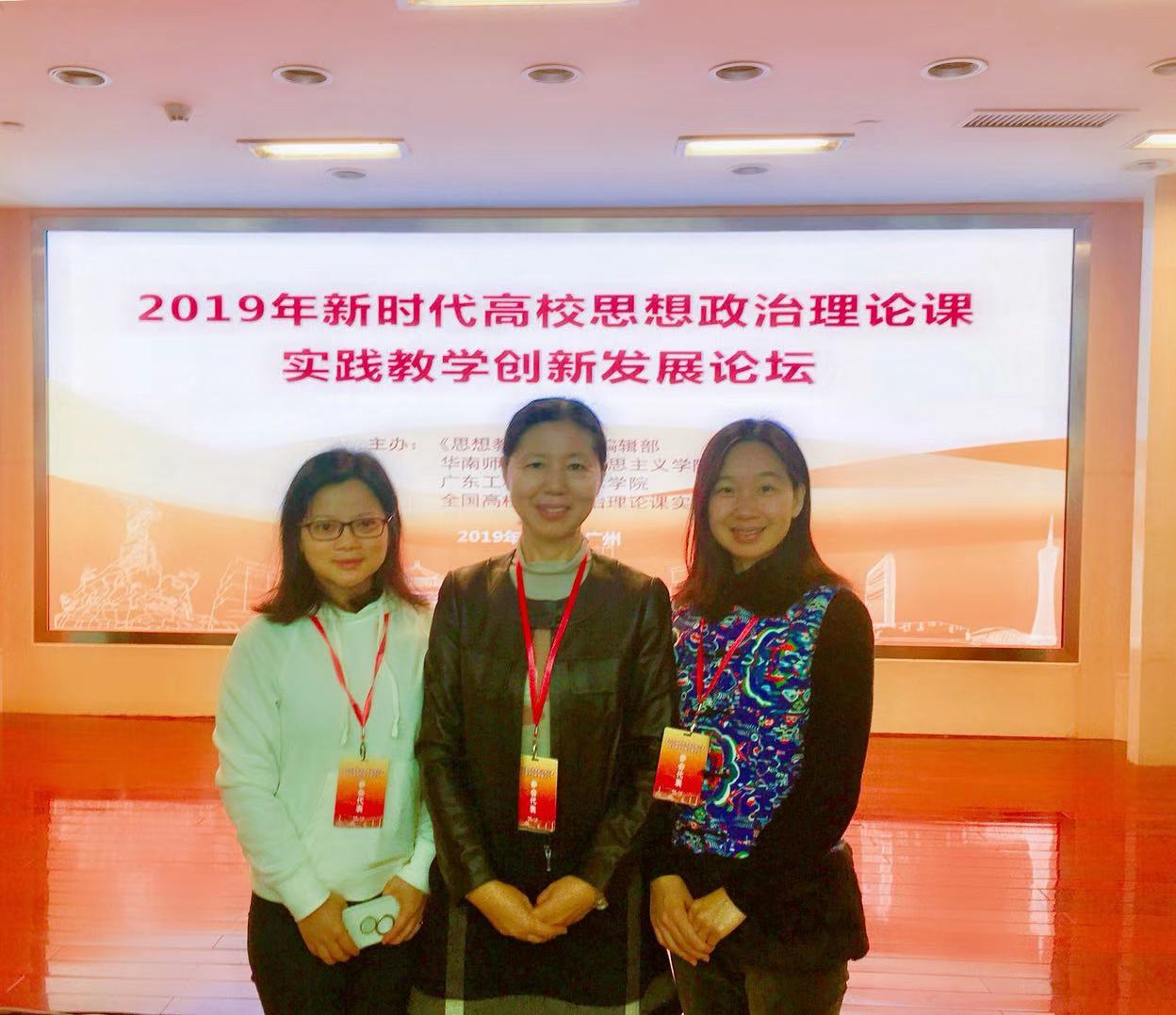 12月14日—15日,新时代高校思想政治理论课实践教学创新发展论坛在广州燕岭大厦召开。来自清华大学、南开大学、华南师范大学、番禺职业技术学院等全国100余所高校的专家学者、思想政治理论课教学骨干等共计200余人齐聚一堂,共商高校思想政治理论课实践教学的创新发展。我校马克思主义学院副院长刘婷和林云老师、吴双丽老师参加了论坛。