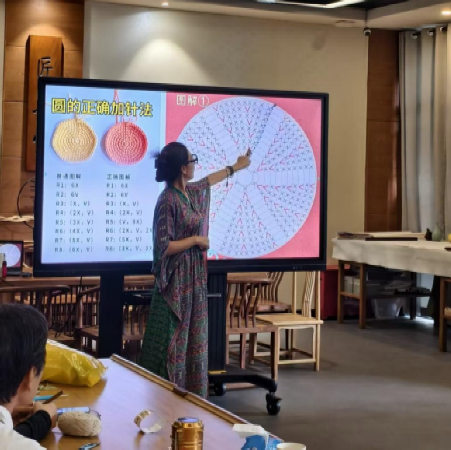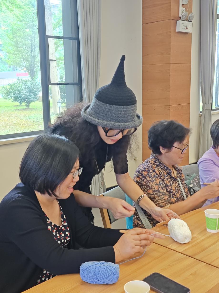 本次公益课程以“非遗传承、美育生活”为主线,设计科学、内容循序渐进。从最基础的针法教学入手,逐步引导学员掌握钩织技巧,最终独立完成一顶充满个人风格的钩针帽子。课堂上,老师耐心讲解、亲手示范,学员们则专注聆听、相互交流,指尖流转间,一缕缕绒线逐渐演变为生动作品,传统技艺在一次次钩挑中焕发出鲜活的生命力。