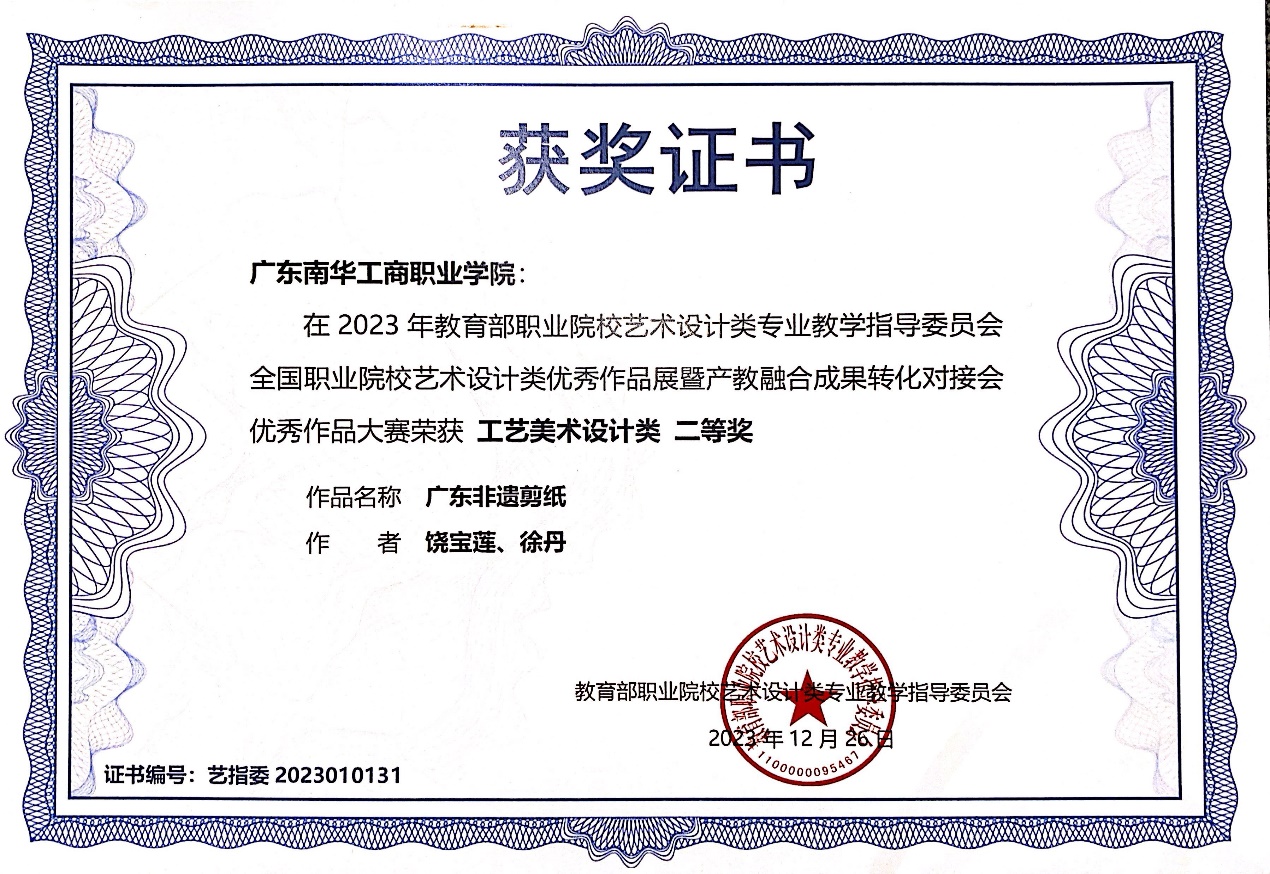 全国职业院校艺术设计类优秀作品展暨产教融合成果转化对接会优秀作品大赛二等奖