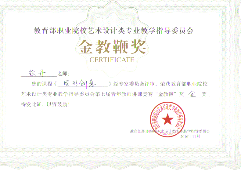 教育部职业院校艺术设计类专业教学指导委员会金教鞭奖金奖