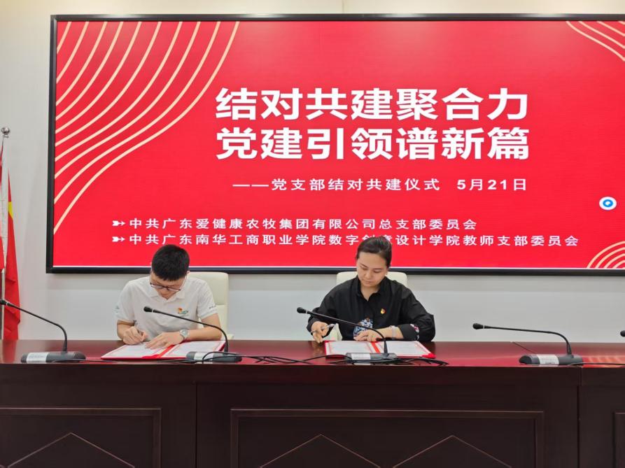 5月21日下午,广东农牧集团有限公司党总支部(以下简称:爱健康农牧集团党总支部)与广东南华工商职业学院数字创意设计学院教师党支部(以下简称:数创学院教师党支部),在清远校区行政楼602会议室成功开展党建共建活动。