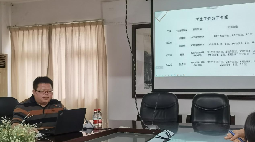 邱伟波老师为学院教师介绍了学院学生工作的分工、学院党政工作会议议题使用流程和学院就业工作总体安排。