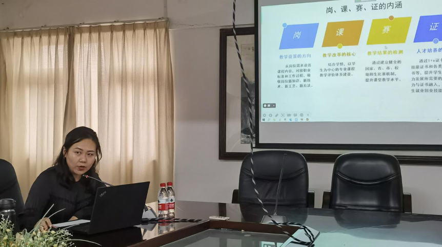 纪姗姗老师为学院教师解读了岗、课、赛、证的内涵,岗、课、赛、证体系建设的关系图和未来的展望,激发内生动力,促进专业建设全面发展。