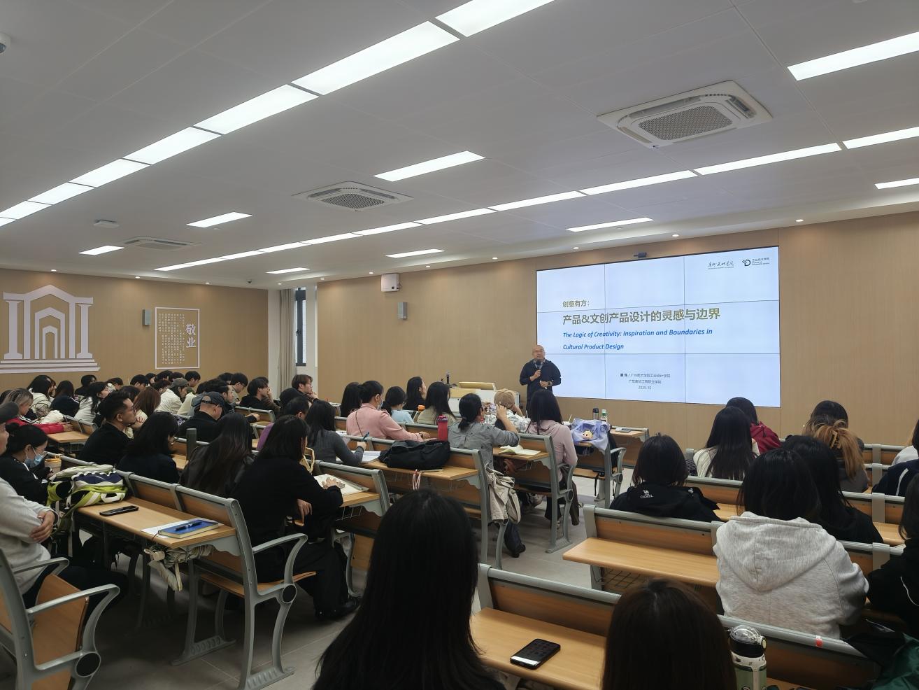 当天下午,学院还特别邀请广州美术学院磨炼副教授为师生带来了一场题为《创意有方:产品&文创产品设计的灵感与边界》的专题讲座。磨炼副教授结合自身丰富的设计经验和典型案例,深入浅出地讲解了产品设计的核心理念、创意方法和灵感来源。