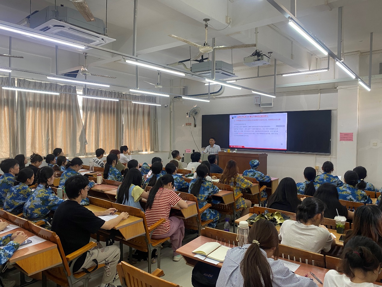 2024年10月14日,数字创意设计学院党支部书记陈德林同志以“党的二十届三中全会精神——积极投身中国式现代化建设的火热实践”为题为23级和24级学生代表讲授2024年秋季第一堂思政课。