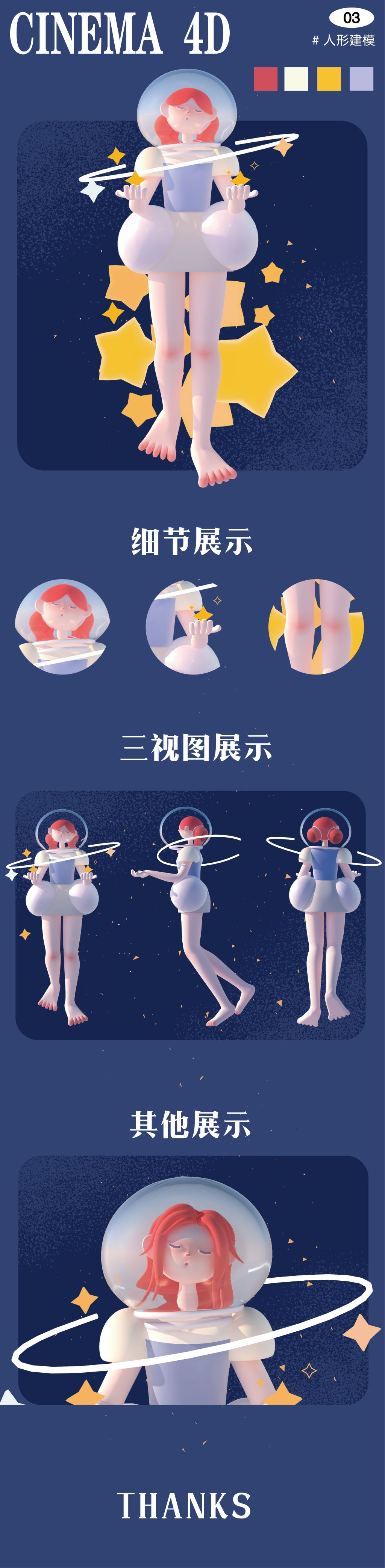 《计算机辅助设计(四)》是数字媒体技术的核心课程,主要内容是三维建模软件C4D的进阶应用。作为新兴的三维软件,C4D以高运算速度、优质建模和强大的渲染插件著称。C4D能够在短时间内创造出最具质感和真实感的作品,其强大的能力表现和视觉魅力,在平面设计、影视后期、IP人物设计、字体设计等方面都有着出色的表现效果。近年来,C4D也常用于制作特效大片、电影海报、品牌活动设计、3D广告大片等,成为了设计界的“网红”。