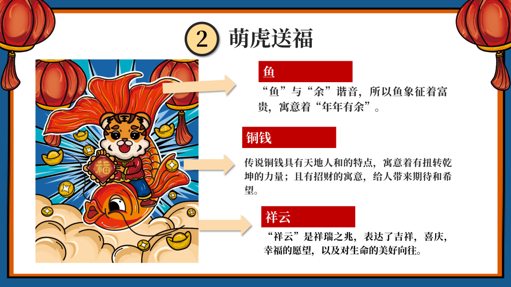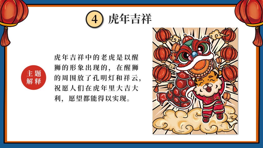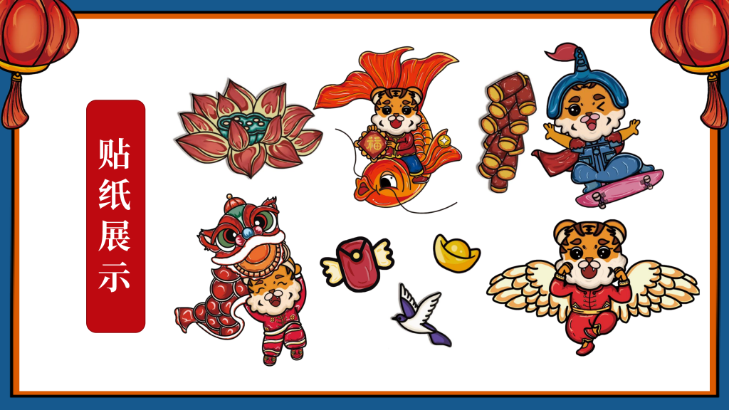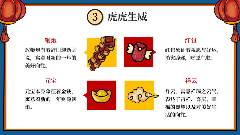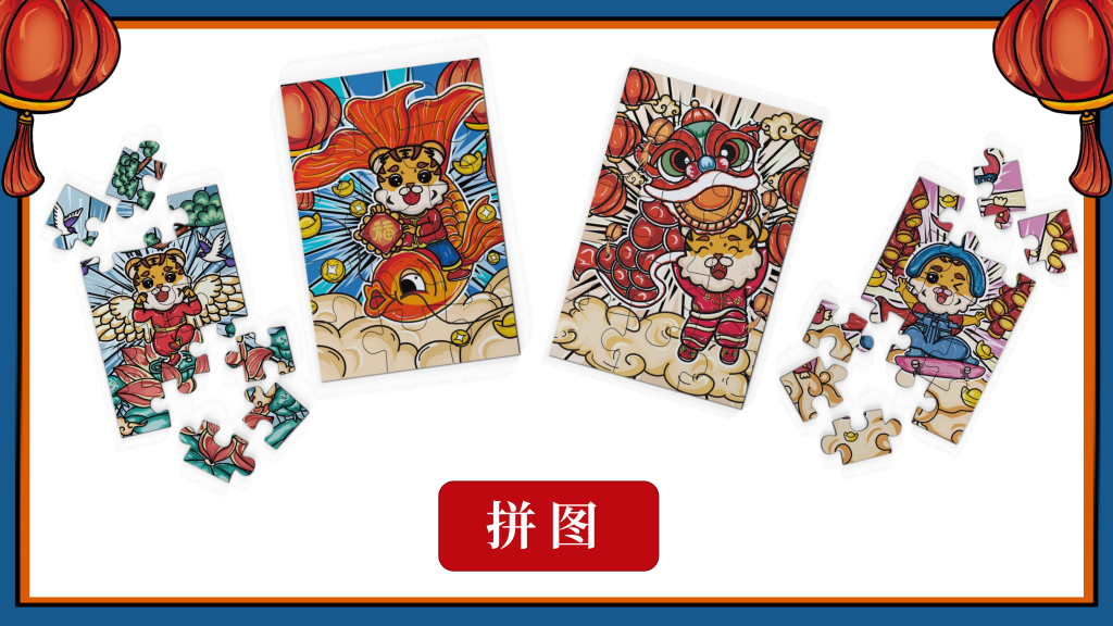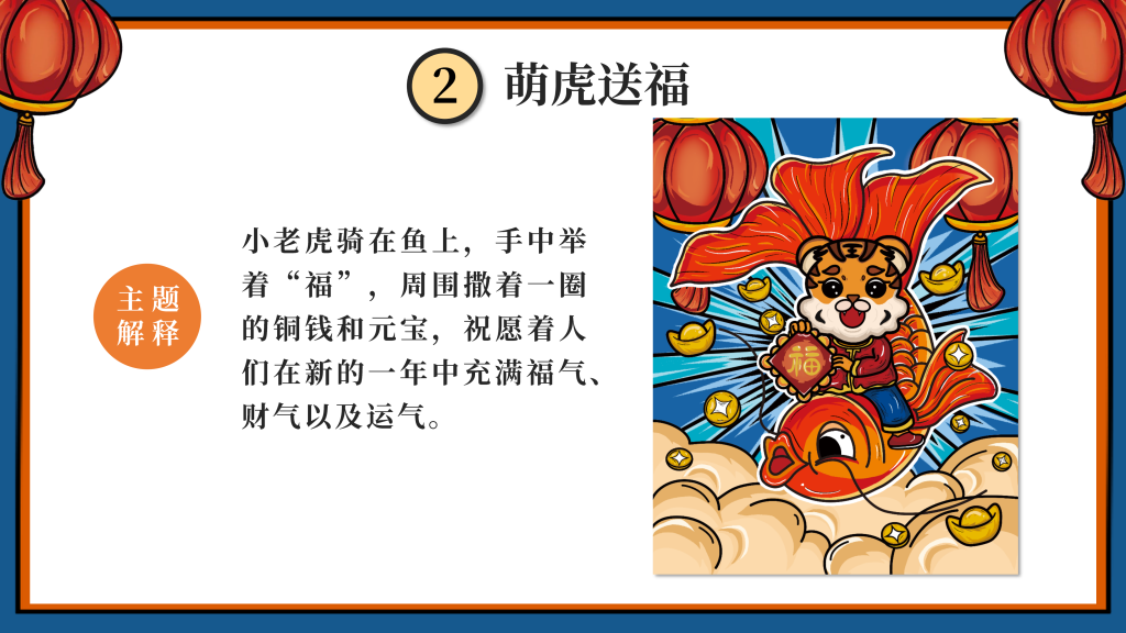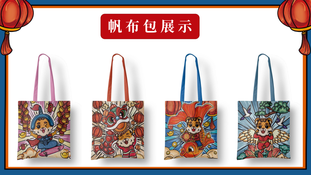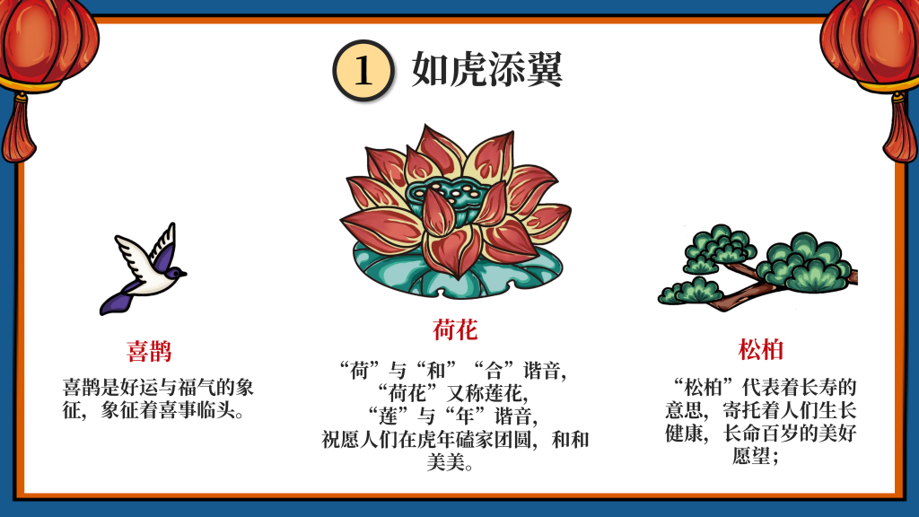 我们采用了国潮的设计风格,以“新年”为主题,设计了一只有趣的“虎”IP形象,挑选了4个的带“虎”字的有美好寓意的成语作为插画的主题组成一系列插画,即:如虎添翼、虎虎生威、虎年吉祥、萌虎送福,用中国传统的吉祥美好象征寓意的元素,搭配丰富的色彩+双重阴影,使画面更加丰富,通过大胆的配色,新颖的方式表现“新年”,传递“喜庆”。