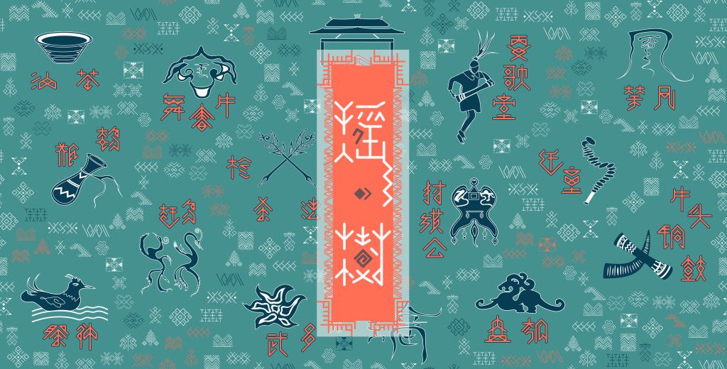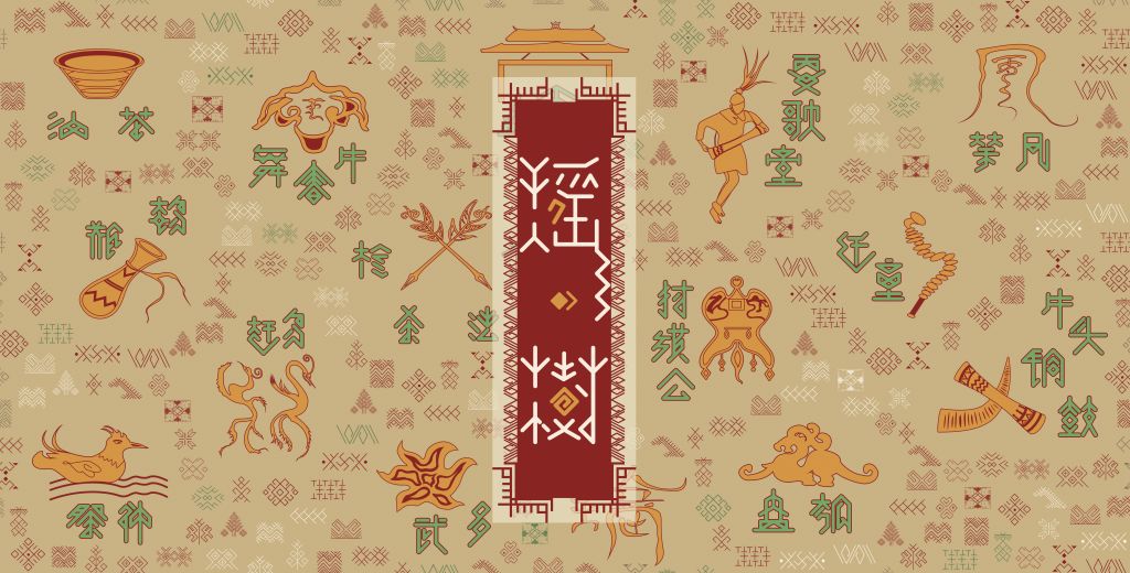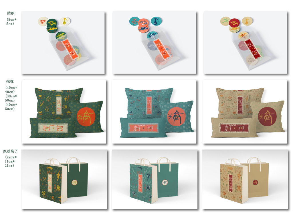 设计说明:作品长61cm,宽31cm,对具代表性的瑶族传统图案角鼓、牛头、枪剑等与文字武多、迁童、赶鸟等进行设计。瑶族人民有着对宇宙万物的崇拜,敬畏大自然,刺绣图腾多以自然生命为主,由此延伸出两个设计主旨:一、大自然的魅力与瑶族的生活息息相关,最终形成了瑶族的生命树,因此取名“瑶·树”;二、希望瑶绣能如参天大树般开茂盛如荫,走进大众的视野及日常生活,展现瑶族的强大生命力。作品以瑶绣为元素,结合广东连南八排瑶族的当地传统风俗及生活习惯,创新传统的刺绣文创,面向年轻一代,结合当下市场发展的需求,与新时代共同创新。