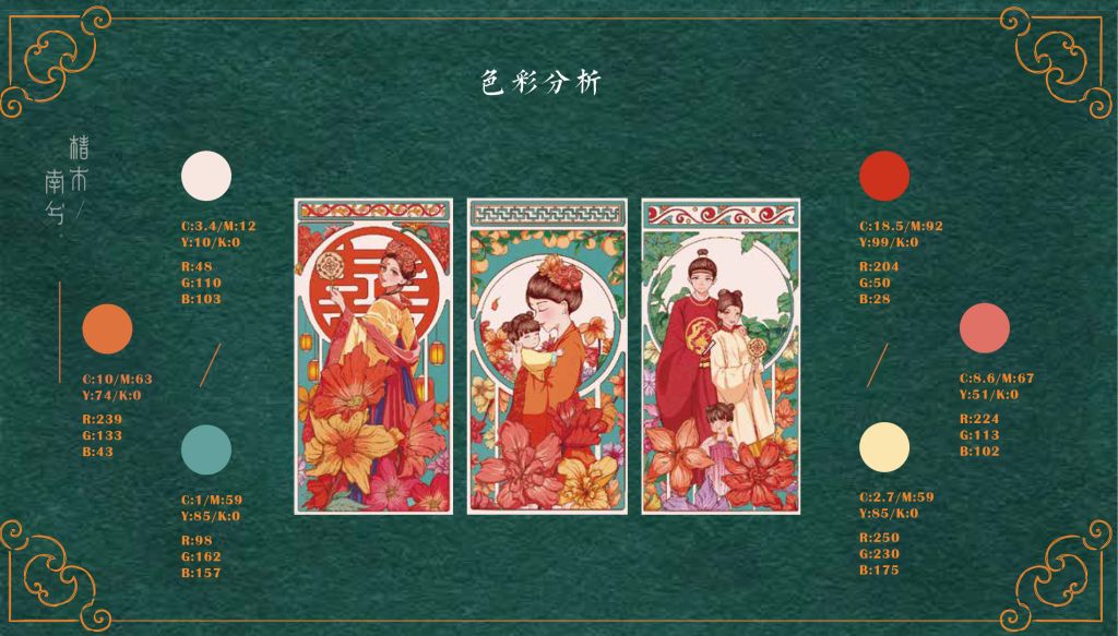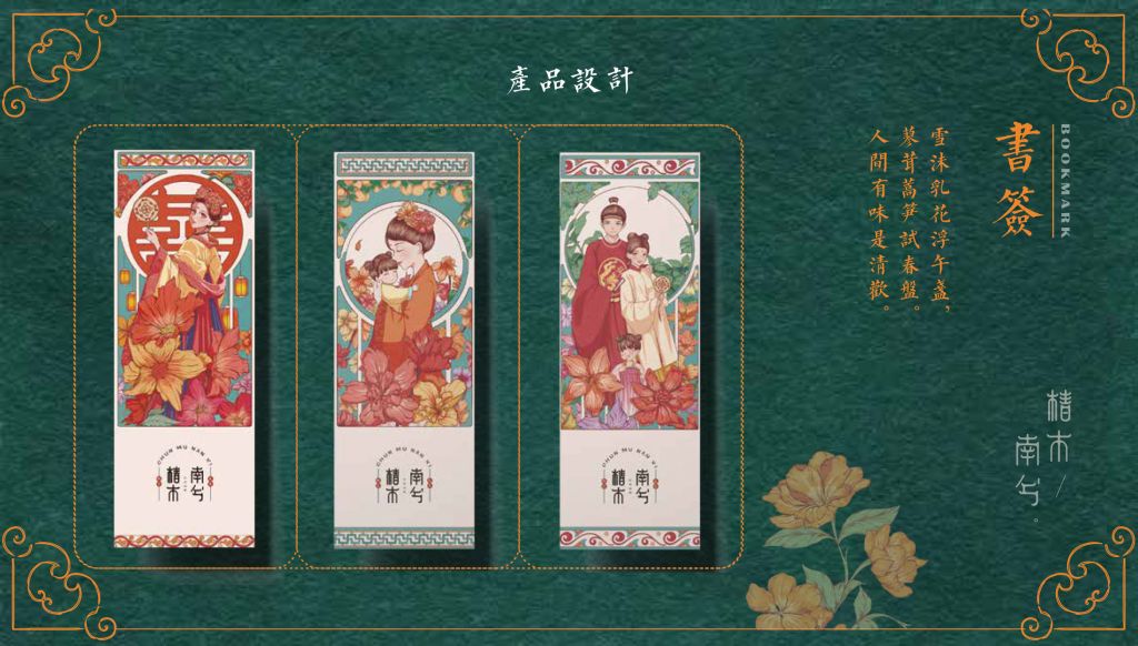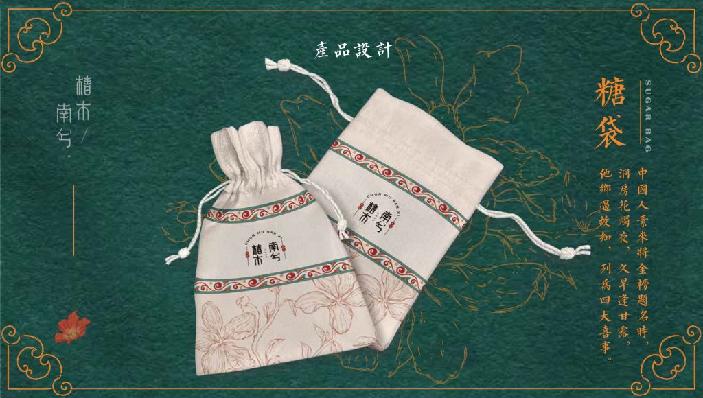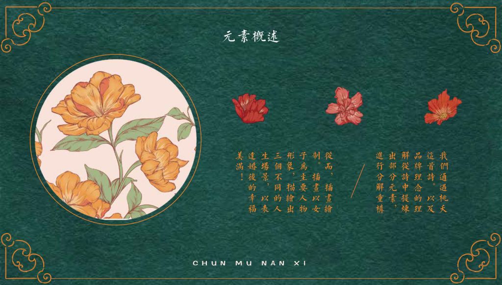 《椿木南兮》是一组婚庆产品设计,以《诗经》中的《桃夭》为设计元素: