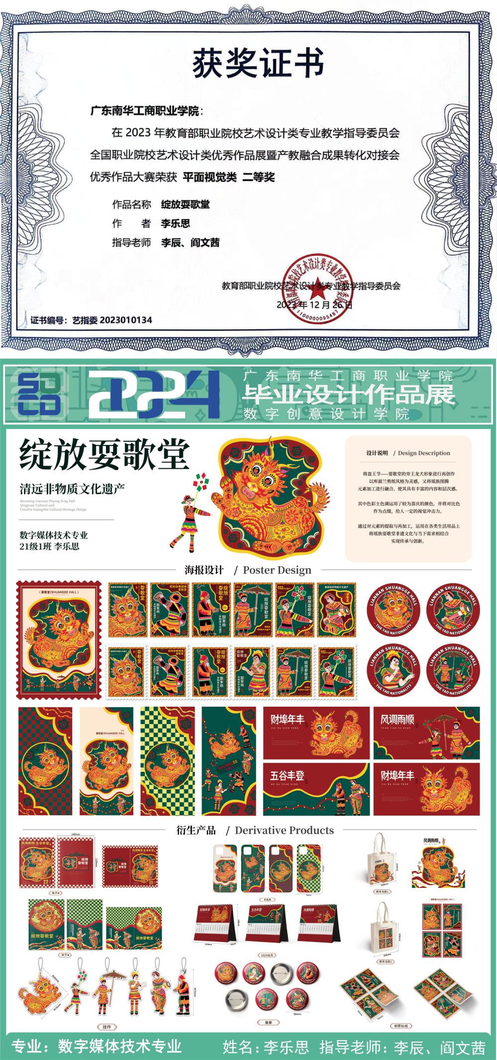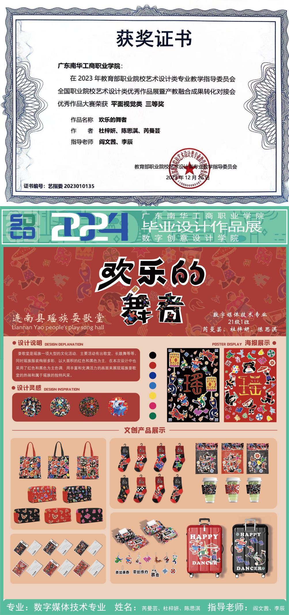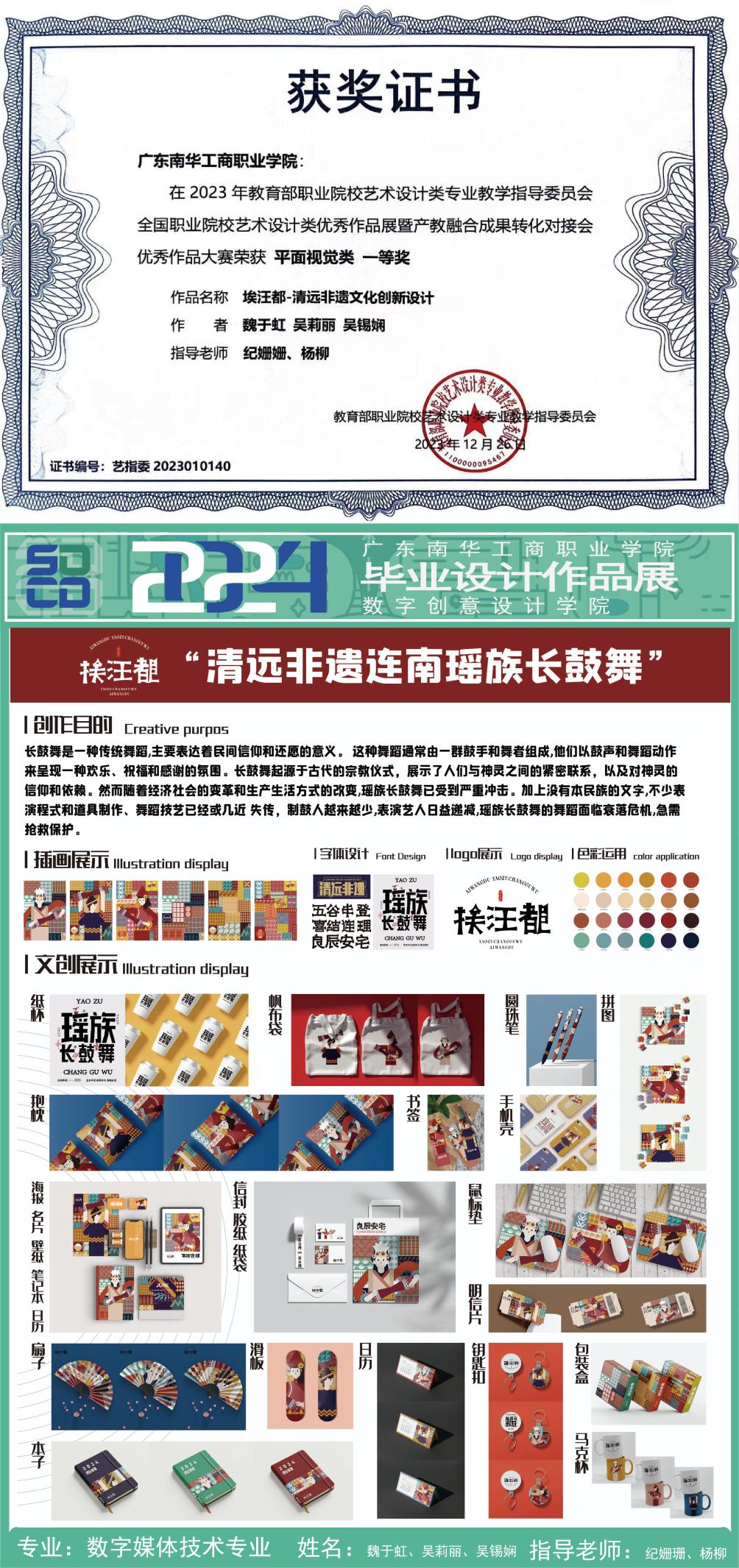 由教育部职业院校艺术设计类专业教学指导委员会主办的全国职业院校艺术设计类作品“广交会”同步交易展暨 2023年校企创新成果对接会于2023年12月24日在广州琶洲LIC灵感创新展馆举行,我院数字媒体技术专业在本次展览中表现突出,大赛荣获一等奖1项、二等奖1项、三等奖2项。