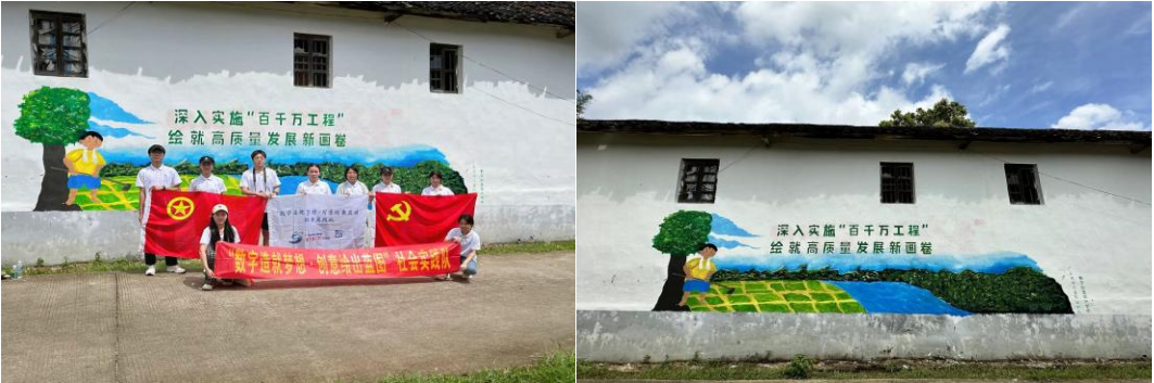 活动期间,实践队成员们走进蓝青村和三华村,以墙为纸,以彩为墨,用画笔勾勒出一幅幅充满生机与希望的乡村画卷。他们不仅展现了高超的绘画技艺,更将青春的热情与对乡村的深情厚谊融入其中,让原本单调的乡村墙面焕发出新的活力,成为了一道道亮丽的风景线。墙绘作品不仅美化了乡村环境,更激发了村民对美好生活的向往和追求。