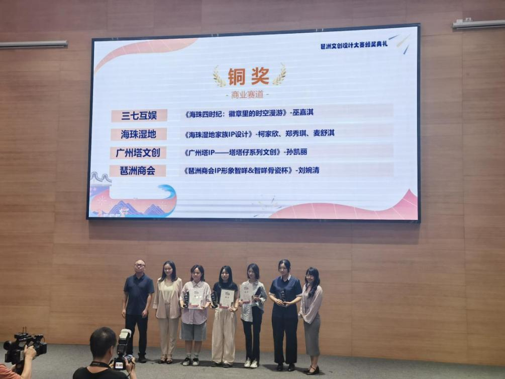 本次赛事设有商业和公益双赛道,涵盖生活文创、城市文旅、品牌IP及海珠元素设计等领域,共吸引377位创作者共提交628份作品,最终评选出各类获奖作品43件,学校数字创意学院巫嘉淇同学作品荣获商业赛道铜奖,李辰、黎文煜老师获评海珠区文创先锋伙伴。