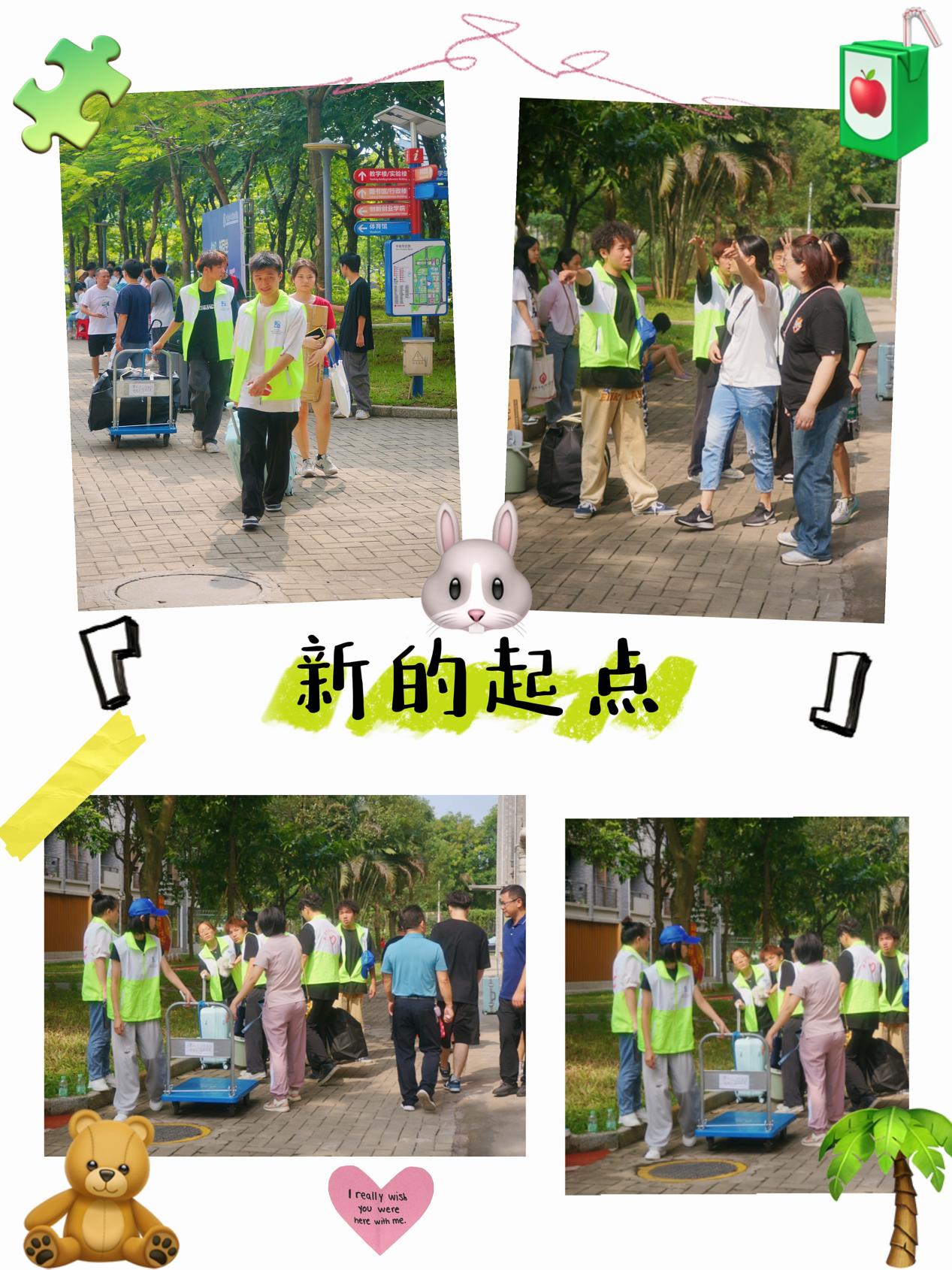热情洋溢的学长学姐,迅速搭建起新同学与学院的桥梁,新生注册-完成缴费-班级报到-领取纪念大礼包-登记住宿,各个环节均有指示牌指引,学院志愿者贴心为学生服务。