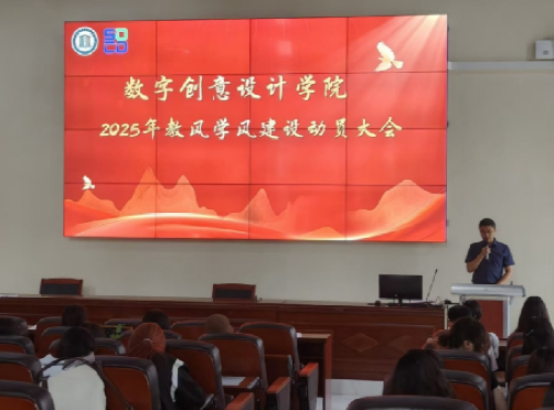 2025年5月7日下午,数字创意设计学院召开2025年教风学风建设月活动动员大会。会议由汤湘湘主持,学院党总支书记陈德林、专业群负责人刘上冰、学院全体教师以及学生代表参加会议。