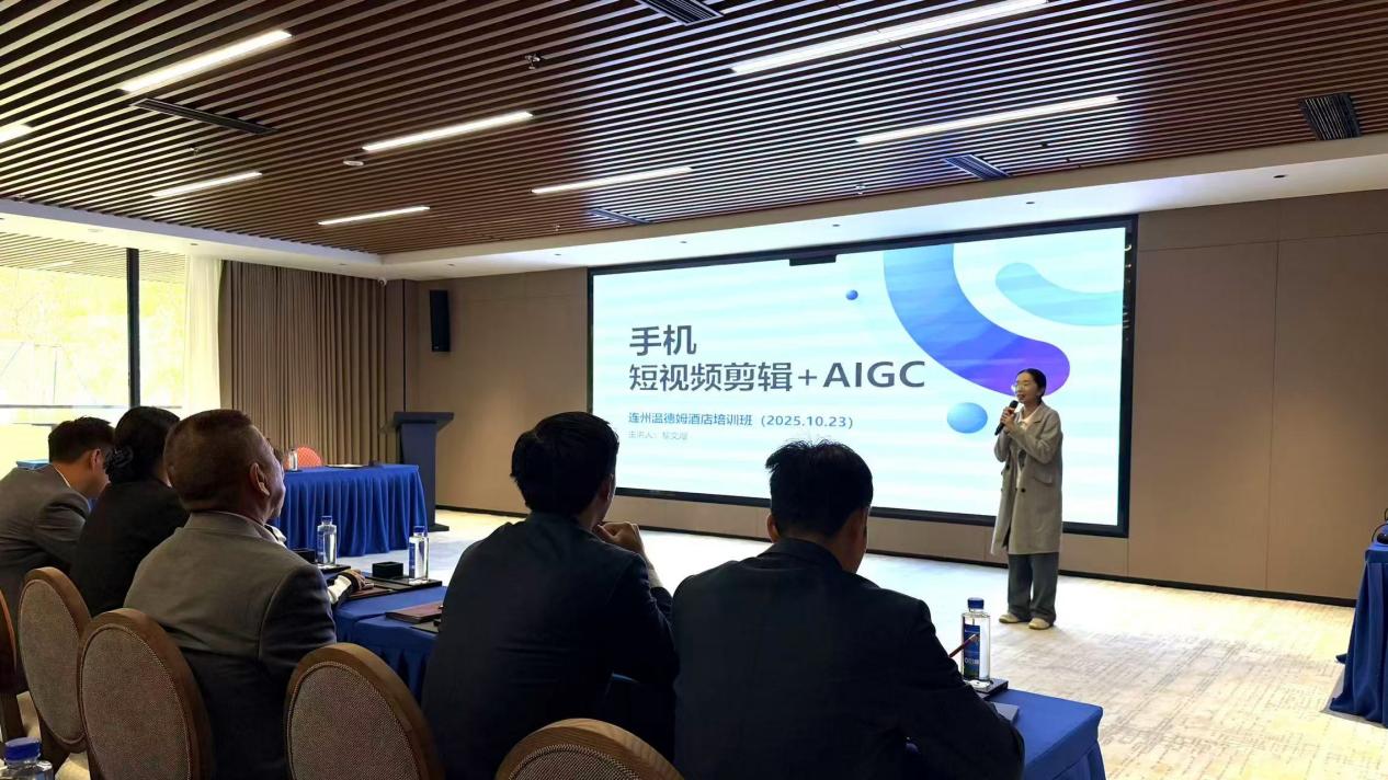 伴随乡村振兴战略的深入实施,数字技能已然成为赋能乡村文旅产业、激发地方发展活力的关键要素。2025年10月23日下午,数字创意学院于连州温德姆酒店圆满举办了“手机短视频剪辑+AIGC”专题培训活动,助力酒店及景区从业人员掌握新媒体内容创作工具,打造契合当下传播趋势的宣传内容。