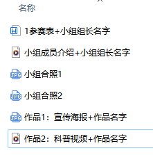 各参赛小组按照下面表格要求的4个内容提交。(备注:指定作品和自选作品是不同类型作品,按组委会要求两个作品都要提交,即提交的作品包含3份:原创健康科普海报、健康科普微视频、自选作品。)