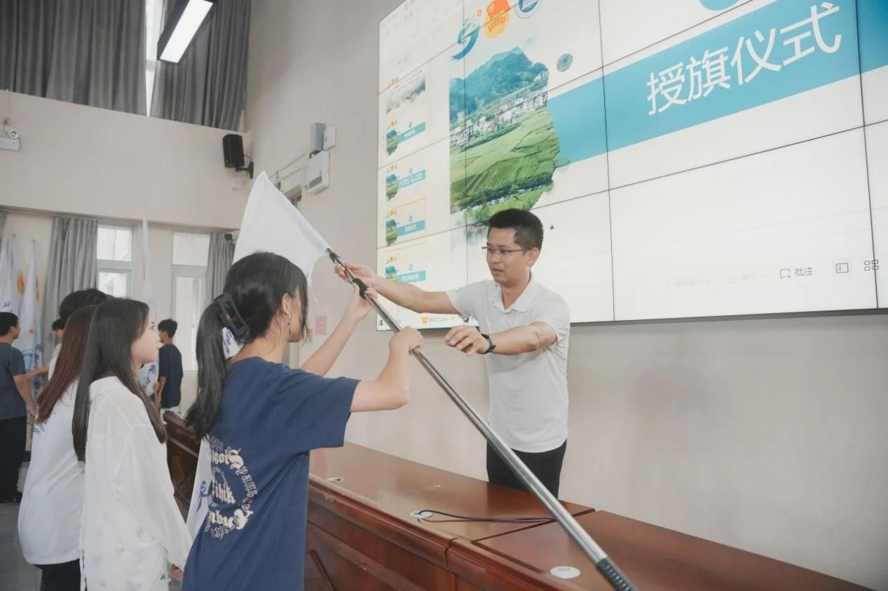 现场为我校青年大学生“百千万工程”突击队代表授旗,并签署了安全责任书。