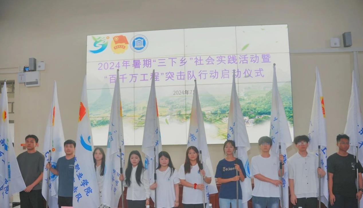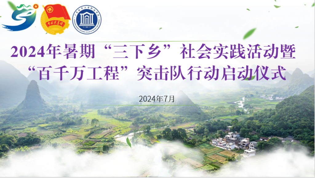 2024年“三下乡”暨“百千万工程”突击队行动出征的号角已吹响,希望参加社会实践的师生,紧扣广东省“百千万工程”中心任务,围绕绿美广东、美丽乡村等专项,带着学校的嘱托,以饱满的真情、热情、激情,探索乡村振兴的新路径,深化社会实践育人成效,引导广大青年学子积极参与“三下乡”、广东青年大学生“百千万工程”突击队行动等社会实践活动,在推进县域高质量发展、强国建设、民族复兴伟业中展现青春有为、彰显青春风采。