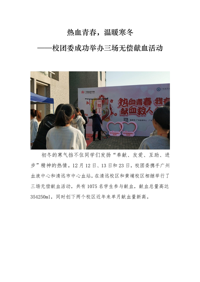 热血青春,温暖寒冬——校团委成功举办三场无偿献血活动
