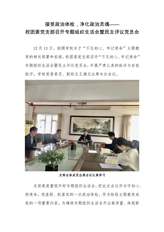 接受政治体检,净化政治灵魂——校团委党支部召开专题组织生活会暨民主评议党员会