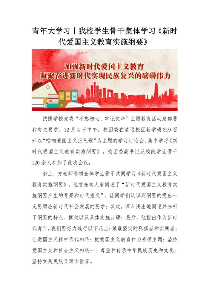 青年大学习丨我校学生骨干集体学习《新时代爱国主义教育实施纲要》