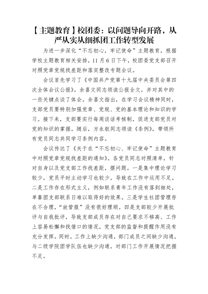 【主题教育】校团委:以问题导向开路,从严从实从细抓团工作转型发展