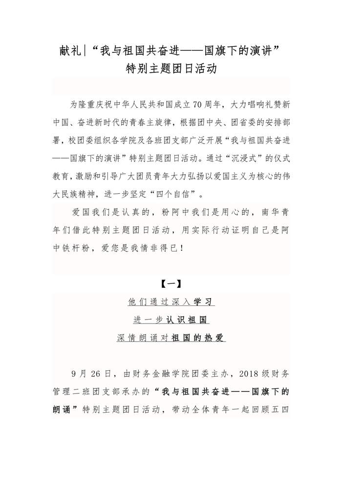 献礼 |“我与祖国共奋进——国旗下的演讲”特别主题团日活动