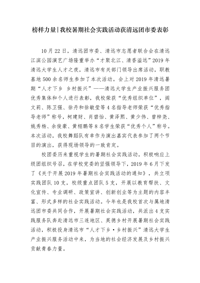 榜样力量丨我校暑期社会实践活动获清远团市委表彰