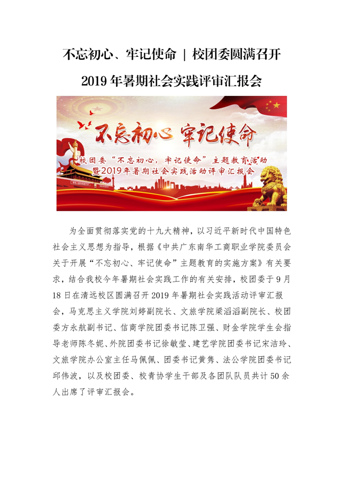 不忘初心、牢记使命 | 校团委圆满召开2019年暑期社会实践评审汇报会