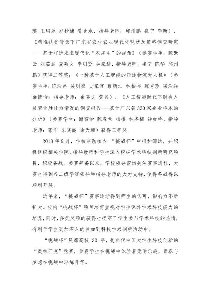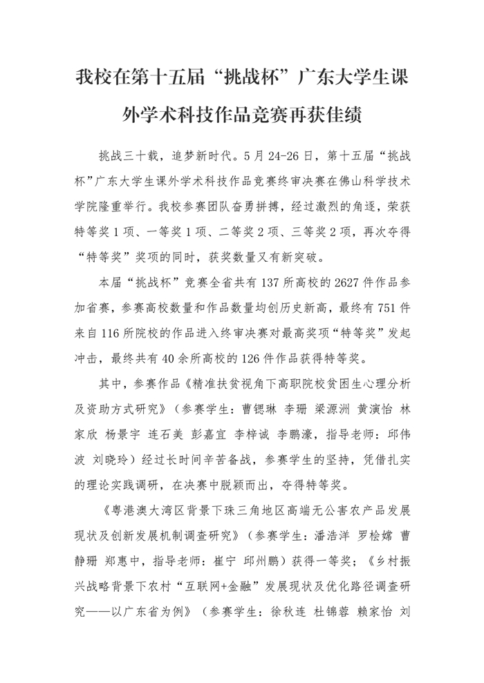 我校在第十五届“挑战杯”广东大学生课外学术科技作品竞赛再获佳绩