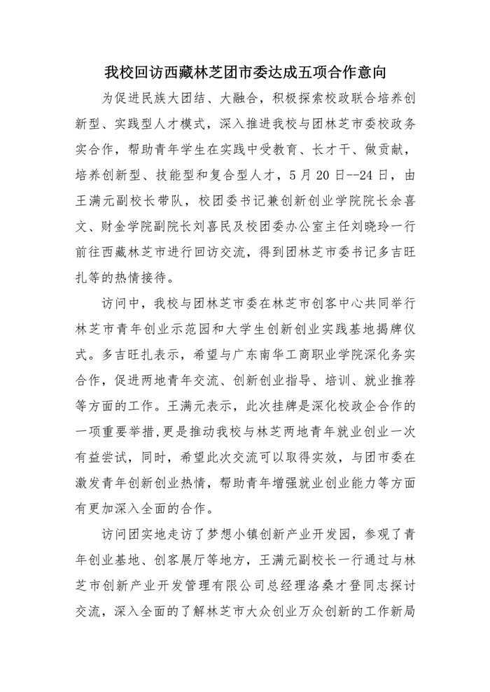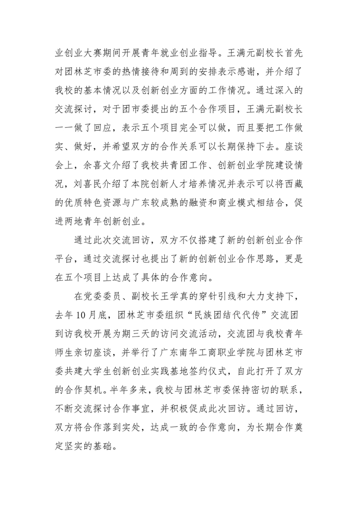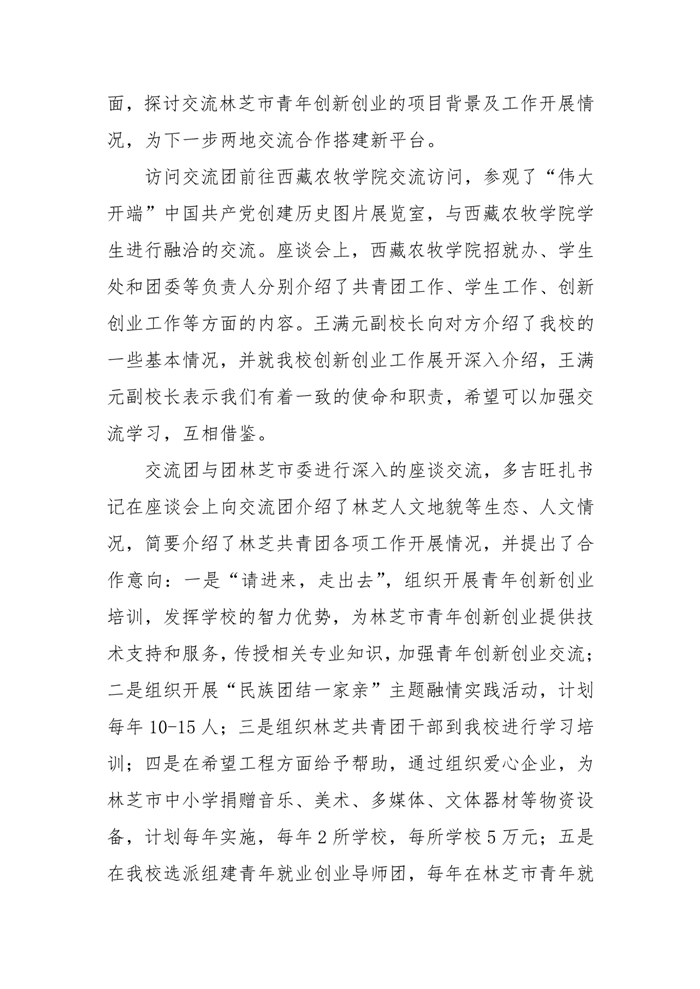 我校回访西藏林芝团市委达成五项合作意向