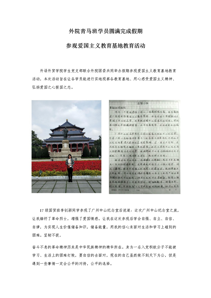 外院青马班学员圆满完成假期参观爱国主义教育基地教育活动