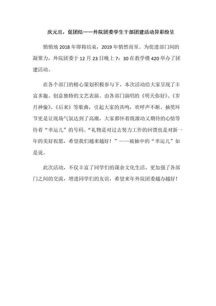 庆元旦,促团结——外院团委学生干部团建活动异彩纷呈