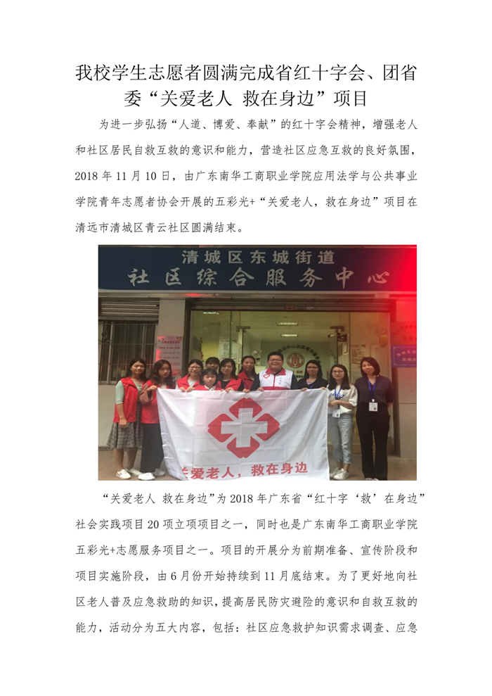 我校学生志愿者圆满完成省红十字会、团省委“关爱老人 就在身边”项目