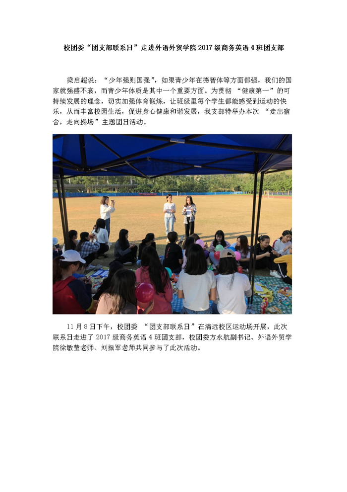 校团委“团支部联系日”走进外语外贸学院2017级商务英语4班团支部