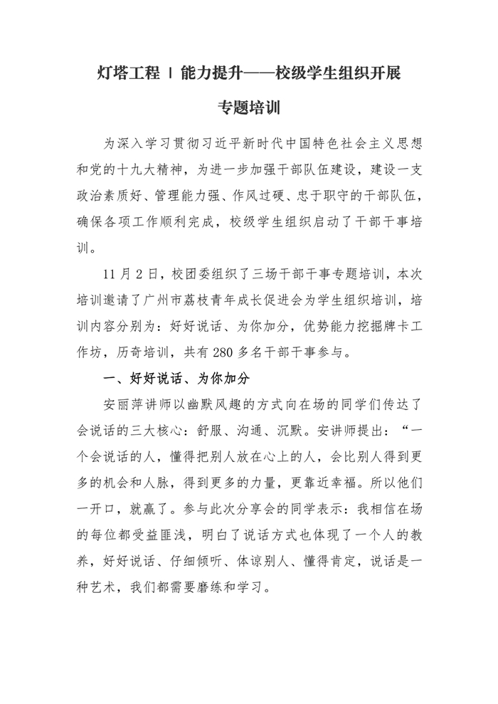 灯塔工程|能力提升——校级学生组织开展专题培训