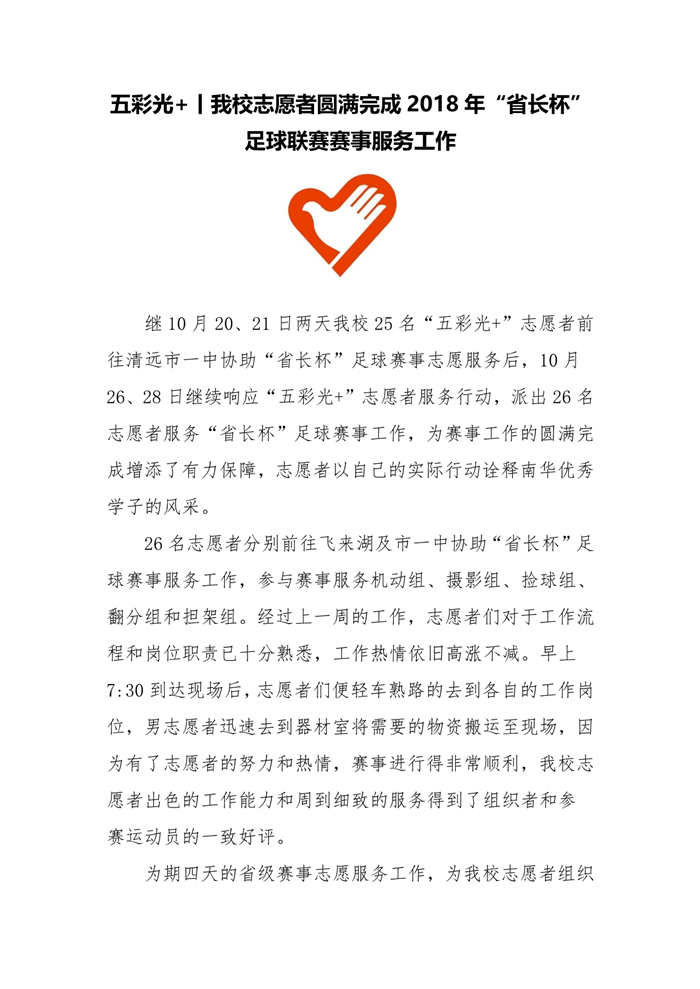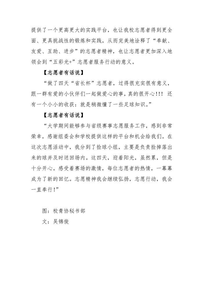 五彩光+|我校志愿者圆满完成2018年“省长杯”足球联赛赛事服务工作