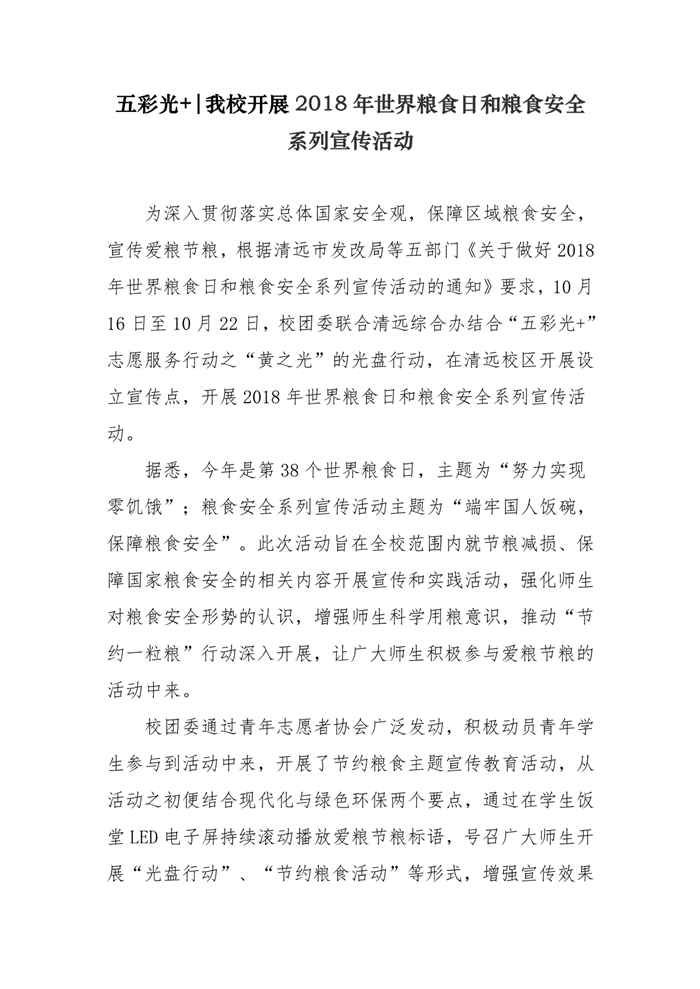 五彩光+|我校开展2018年世界粮食日和粮食安全系列宣传活动
