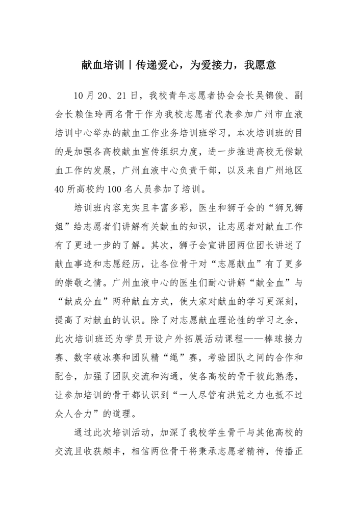 献血培训 | 传递爱心,为爱接力,我愿意!