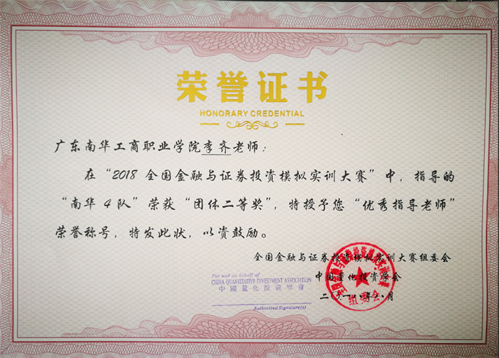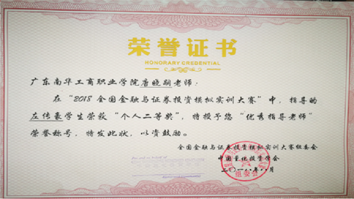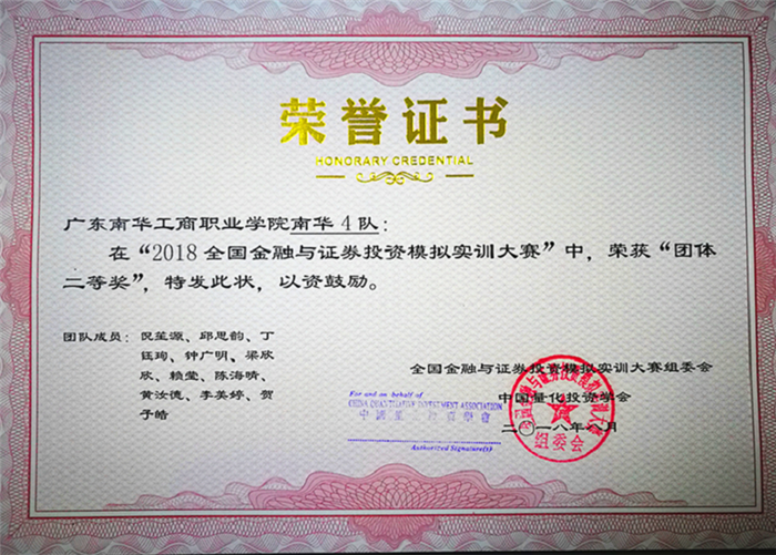 我校财务金融学院16、17级学生参加2018年全国金融与证券投资模拟实训大赛,比赛从4月份开始,经过2个月的激烈角逐,我校参赛队伍终获团队二等奖、三等奖各一项;我院钟广明、左传豪同学荣获个人二等奖,罗晓贤、余清漫同学荣获个人三等奖。
