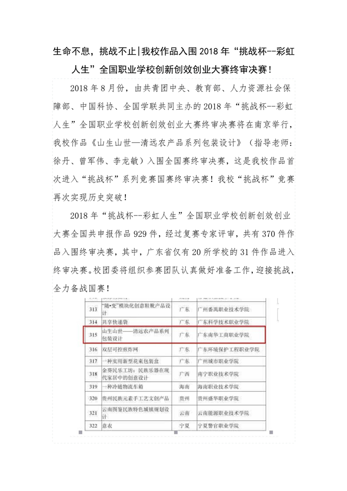 生命不息,挑战不止|我校作品入围2018年全国职业院校“挑战杯”竞赛终审决赛!