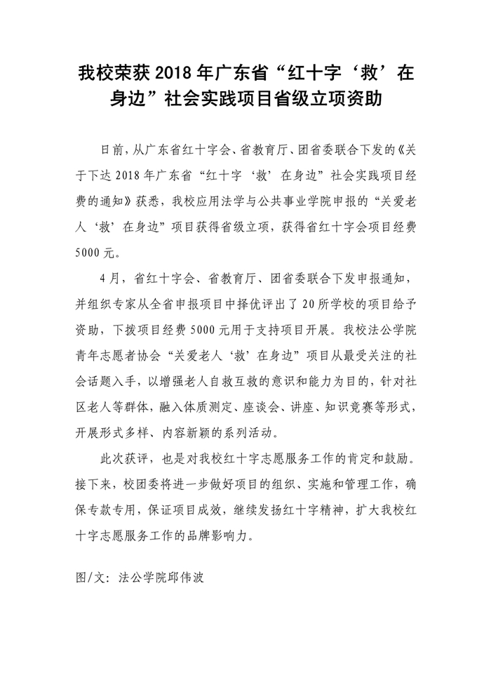 喜讯!我校荣获2018年广东省“红十字救在身边”社会实践项目省级立项资助
