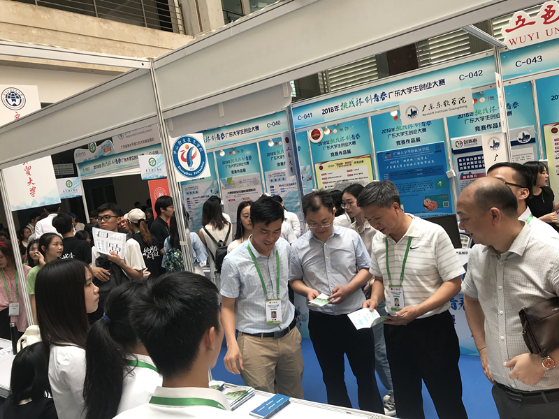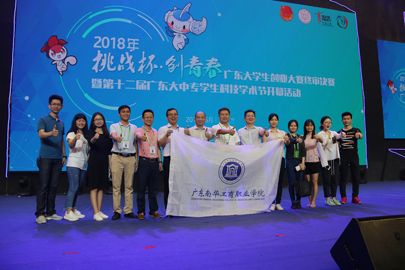 挑战二十载,创享新时代。5月25日至5月27日,由团省委、省教育厅、省人社厅、省科技厅、省科协、省学联共同主办的2018年“挑战杯·创青春”广东大学生创业大赛终审决赛在华南理工大学隆重举办。学校党委委员、副校长王满元同志,财金学院刘喜民副院长、信商学院刘杰副院长等领导、作品指导老师以及校团委全体老师参加了活动。经过激烈的角逐,最终《乐多多》和《风之彩无人面馆》等2个项目获得银奖,另有6个项目获得铜奖,获奖数量再次实现突破!
