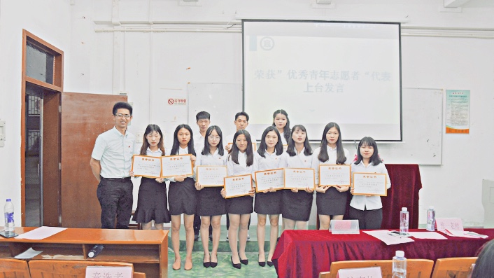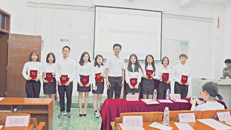 在计票组清点选票的同时,方永航副书记和张一老师分别为校级学生组织干部颁发聘书,并为受到表彰的“优秀团员”、“优秀青年志愿者”、“优秀团干”和“黄埔校区校级学生组织干部十大杰出青年”颁发荣誉证书。随后,获奖代表也上台发表感言,她们总结一年的工作经验,鼓励新上任的师弟师妹们一定要不忘初心、努力奋斗,在黄埔校区的学生中当好称职的排头兵。紧接着,主持人在众人期待的眼神下公布了选票结果和新任干部名单。