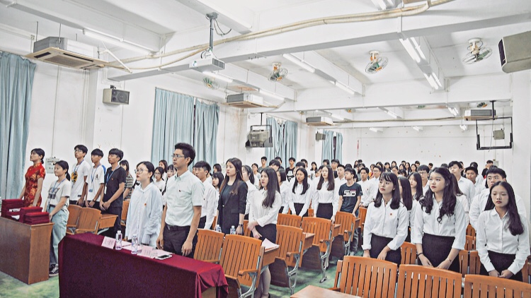 5月14日晚,校团委在黄埔校区北区1-101教室隆重召开了广东南华工商职业学院(黄埔校区)校级学生组织2017-2018年度换任及表彰大会。校团委副书记方永航、校团委专职团干张一、黄埔校区校级学生组织各部门代表以及参与竞选的27名候选人共120余人出席大会。
