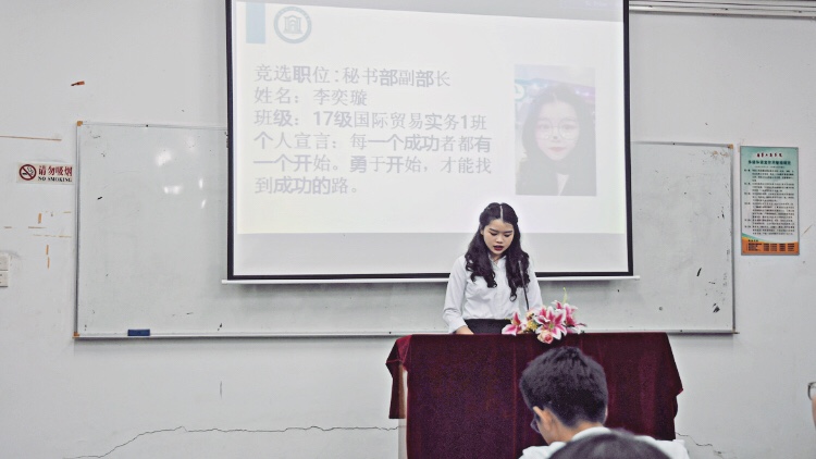 大会在嘹亮的共青团团歌中拉开序幕,首先进入竞选环节。参与竞选的同学们逐一上台,激情澎湃地憧憬着对部门的展望和工作的设想,强烈地表达乐意为同学们服务的愿望。在热烈的掌声中,大会进入了紧张的投票环节。