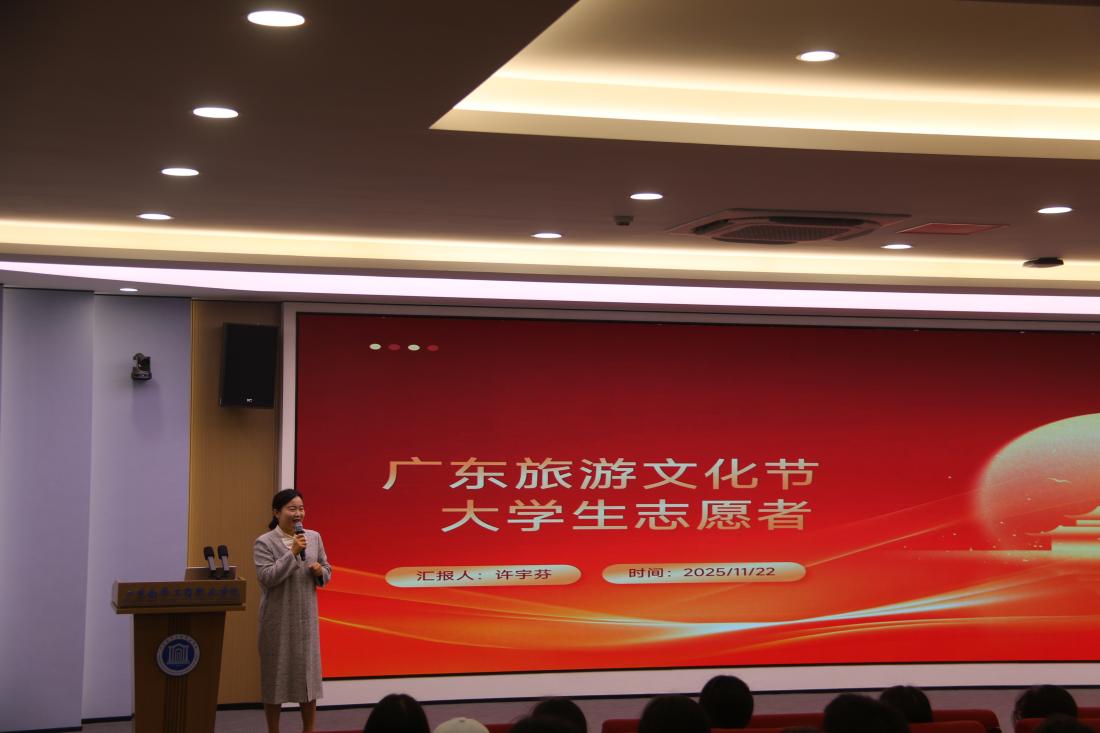 为保障2025年广东旅游文化节顺利举办,我校联合广东金融学院、广东工程职业技术学院在清远校区第二实训楼202报告厅开展了系统、严谨的岗前专项培训。本次培训以“零差错、高水准服务”为核心理念,围绕志愿服务全流程,为同学们夯实专业基础,增强服务信心。