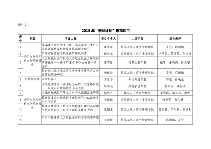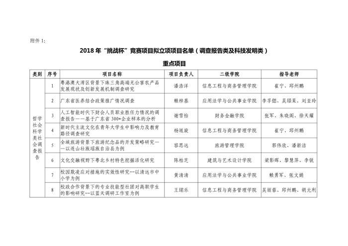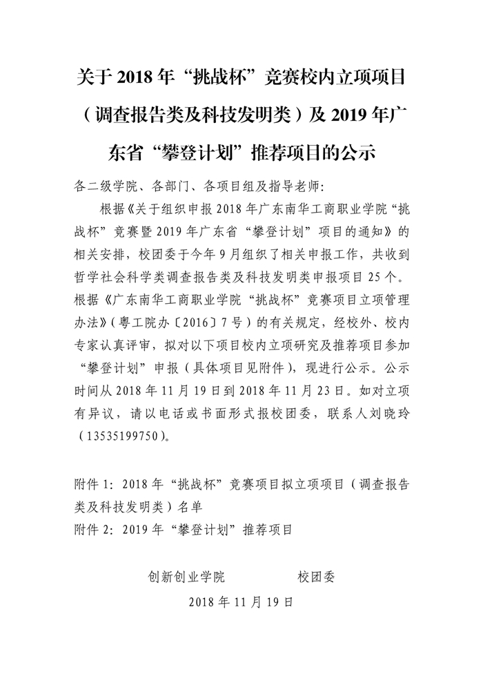 关于2018年“挑战杯”竞赛校内立项项目(调查报告类及科技发明类)及2019年广东省“攀登计划”推荐项目的公示