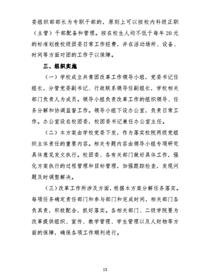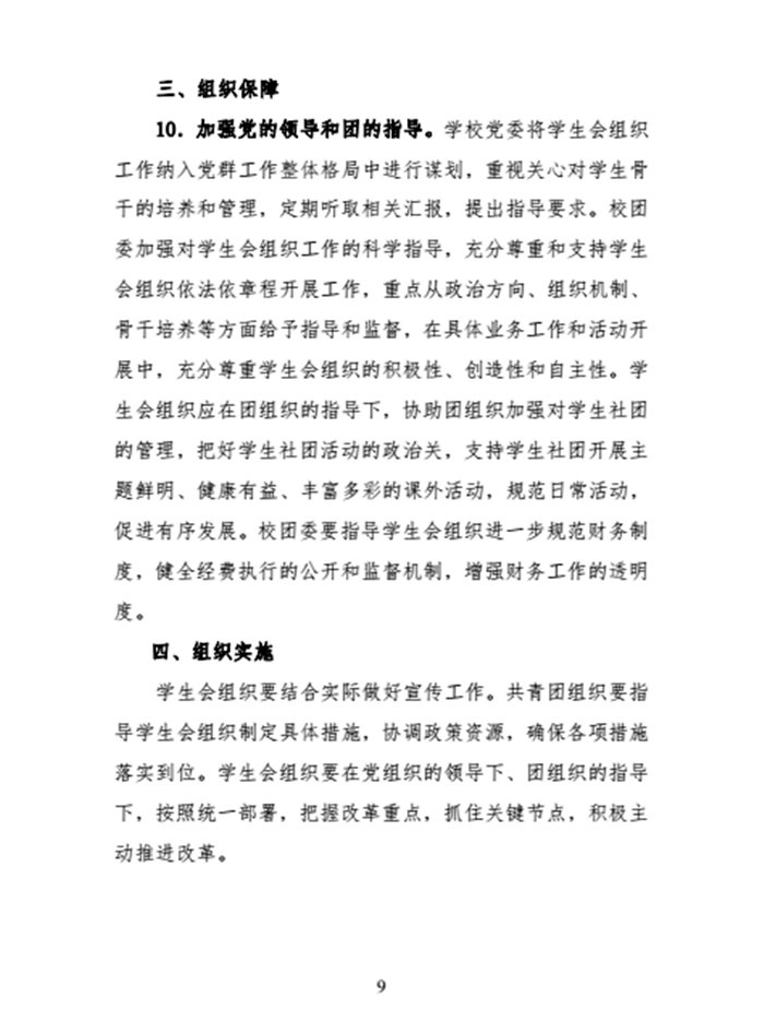 关于印发学校共青团、学生会改革方案的通知