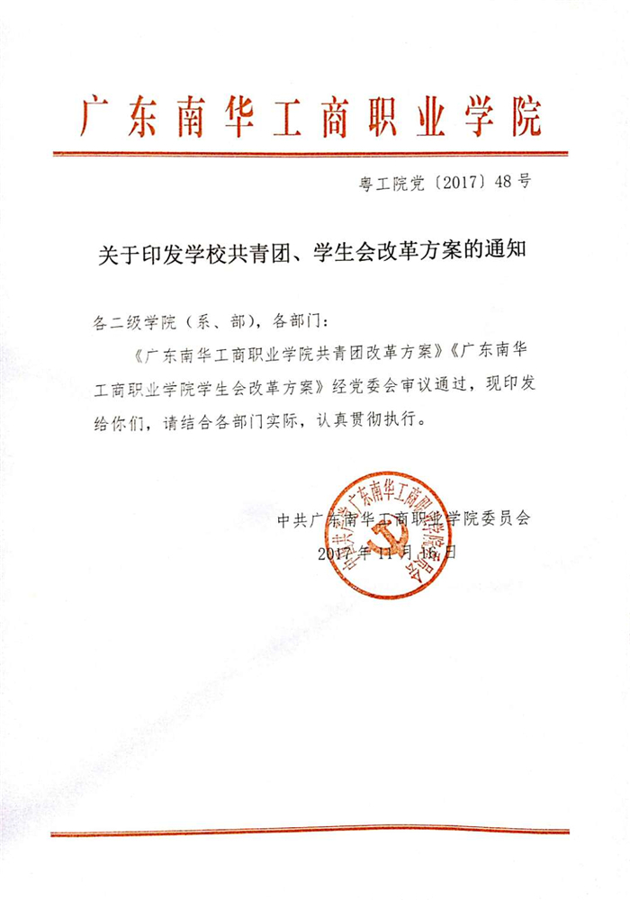 关于印发《广东南华工商职业学院共青团工作量化考核办法》的通知
